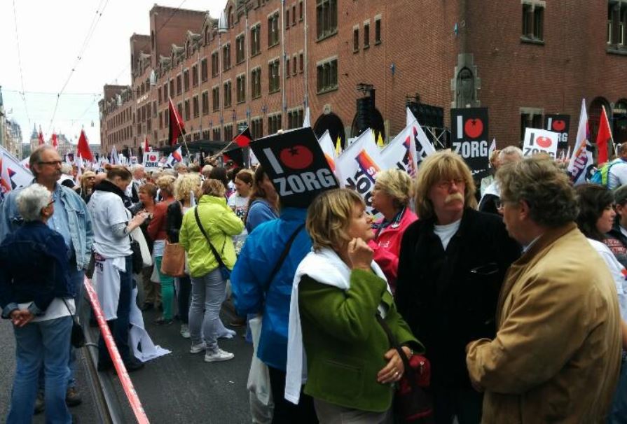 De zorgdemonstratie begon rond het middaguur op het Damrak in Amsterdam. Later liepen de betogers in een lange stoet naar het Westerpark, waar politici en FNV-voorzitter Ton Heerts toespraken hielden. De sfeer was gemoedelijk.